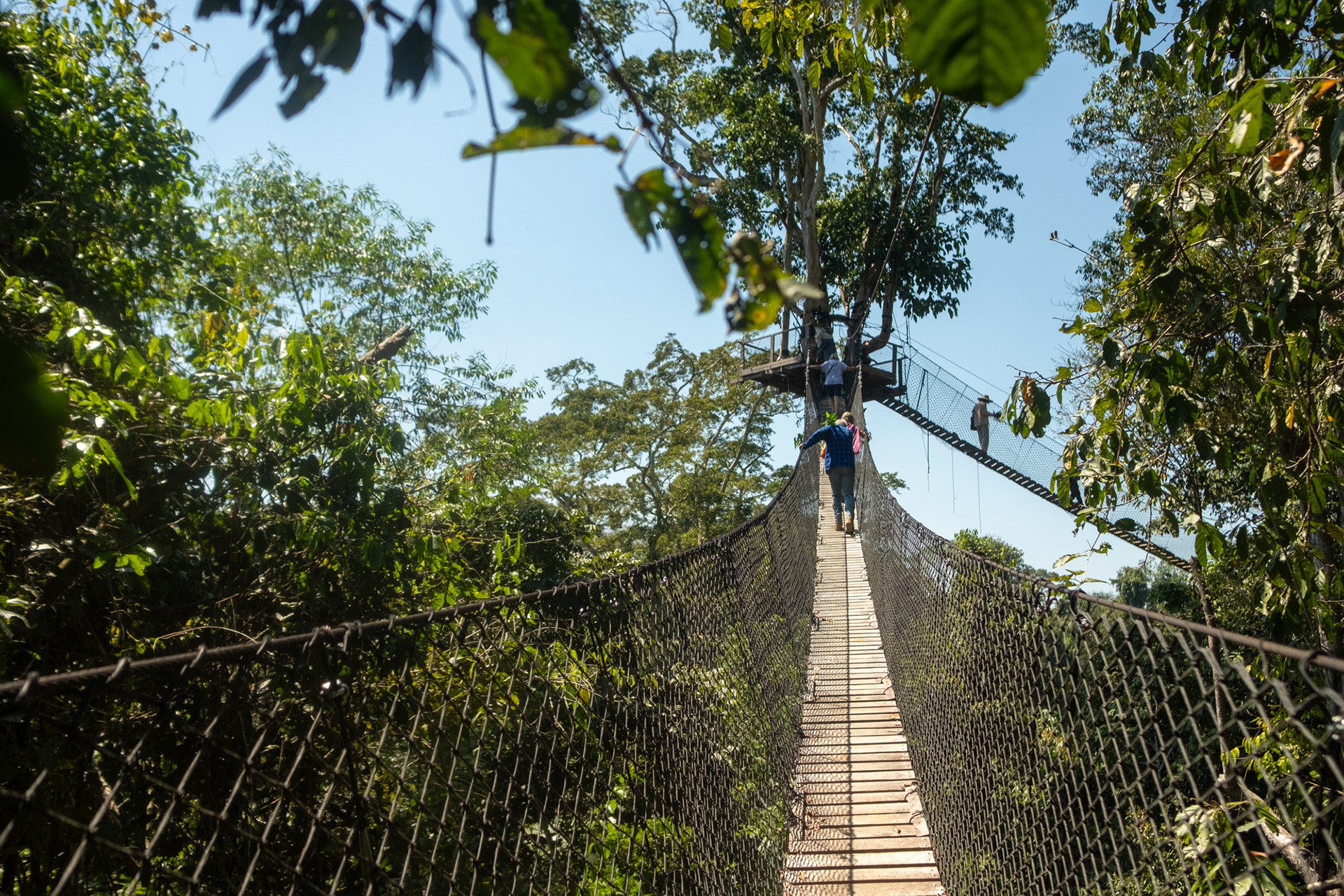 🇵🇱 Podczas podróży zawsze fascynowały mnie mosty – każdy z nich ma w sobie coś wyjątkowego. Widziałem już wiele, ale linowe mosty w Rezerwacie Tambopata, zawieszone wysoko między koronami drzew i prowadzące wprost do świata canopy, całkowicie mnie oczarowały. Spacer po tych wąskich pomostach, zawieszonych dziesiątki metrów nad ziemią, to niesamowite uczucie – wokół rozciąga się bezkresna, zielona dżungla, pełna życia i dźwięków Amazonii.