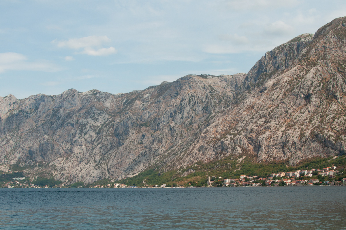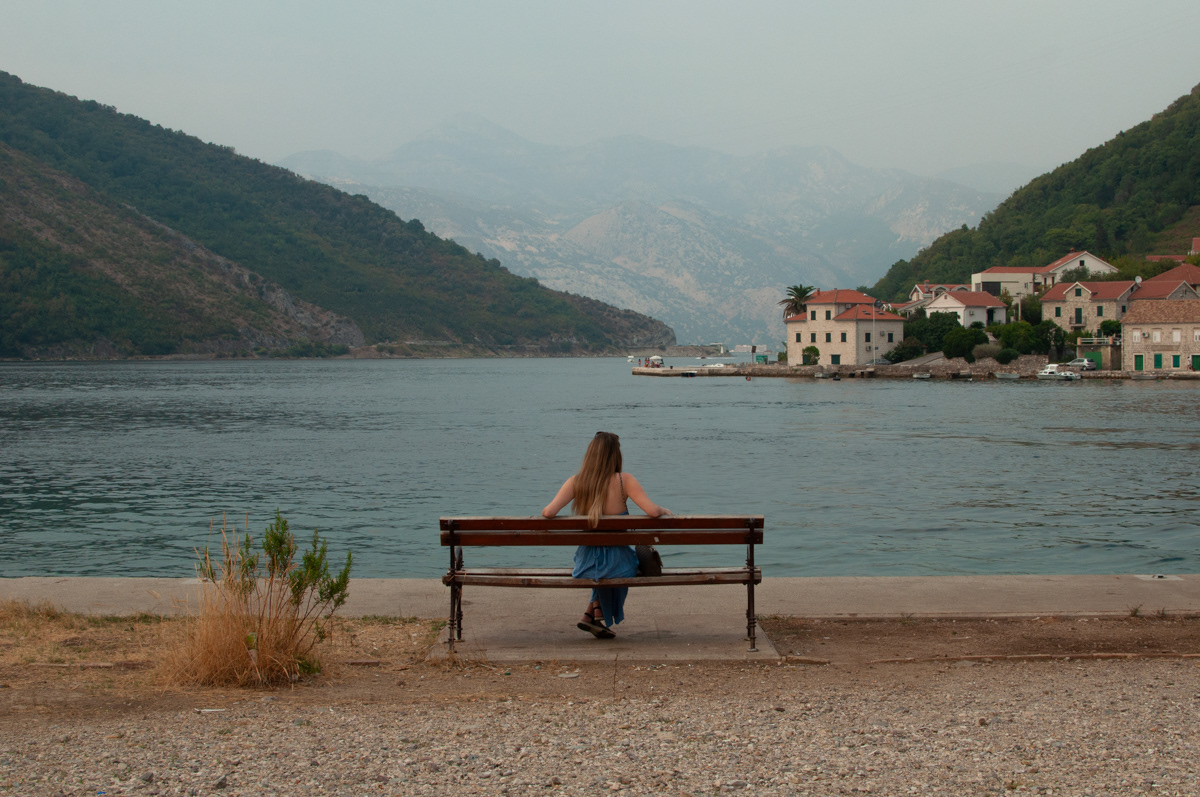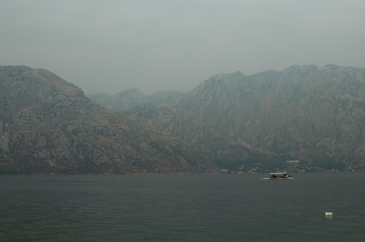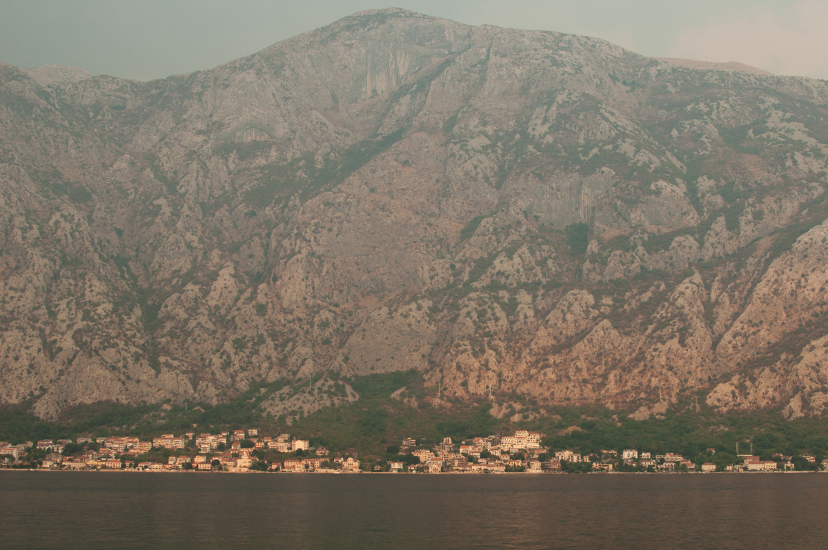 Z każdą godziną słońce przygrzewało mocniej. Powietrze było gęste, duszne i wilgotne, morze parowało, a nad wodą unosiła się delikatna mgła, tworząc ciakawy efekt. Wkrótce dotarliśmy nad Zatokę Kotorską – miejsce jak z pocztówki. Turkusowa woda, otaczające ją góry i malownicze wioski sprawiały, że krajobraz zapierał dech w piersiach. Szliśmy wzdłuż wybrzeża w kierunku Kotoru, a otaczająca cisza i majestatyczne góry dawały poczucie spokoju i bezpieczeństwa. Ludzie nad wodą leniwie spędzali czas, uśmiechali się do nas i byli bardzo uprzejmi. Co chwilę ktoś zagadywał nas na krótką rozmowę – czuliśmy się mile widziani, jakbyśmy byli tu u siebie.
