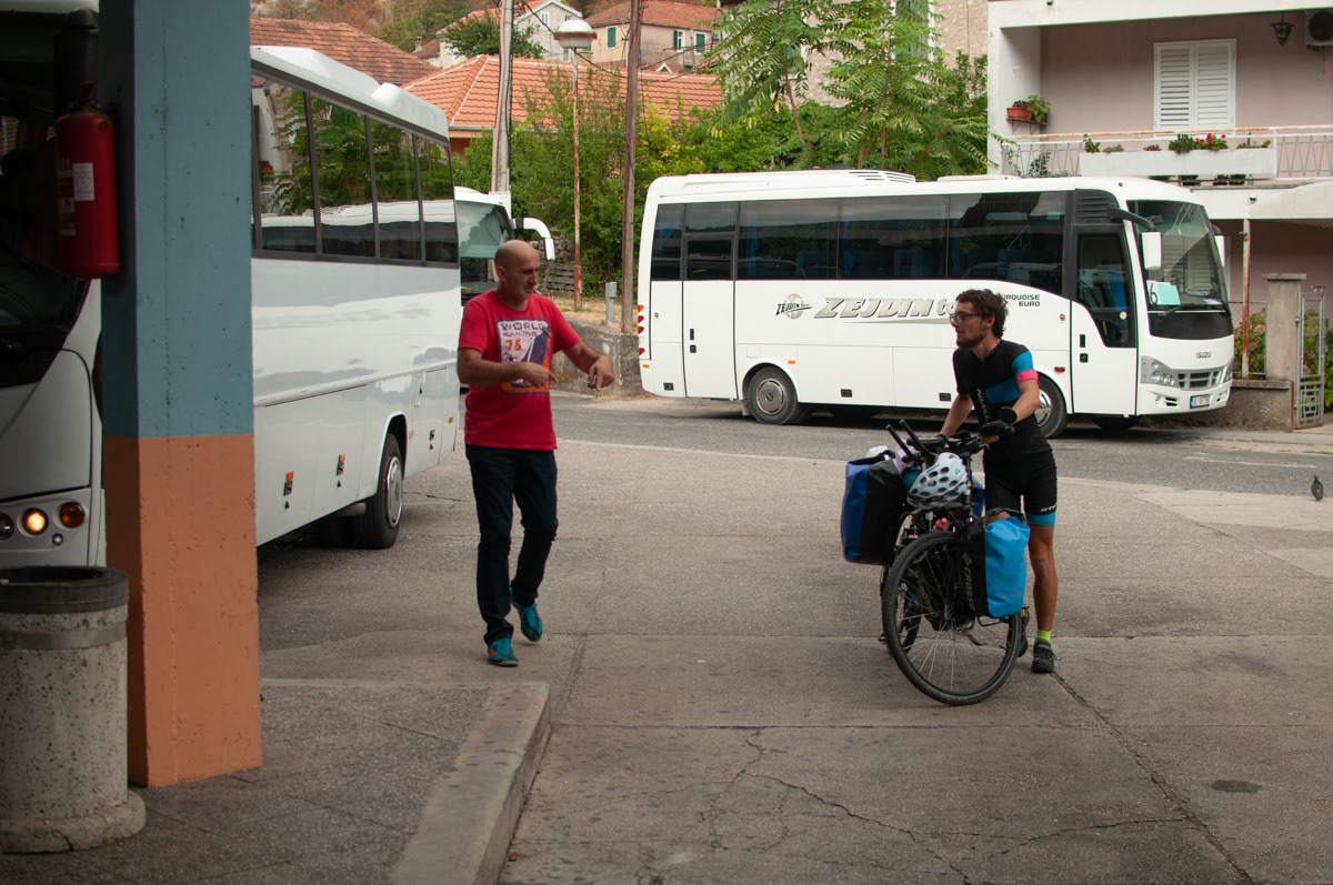 After a short conversation, we moved on. In Kotor—one of the best-preserved medieval towns in the Balkans (UNESCO-listed!)—we wandered through its charming streets when suddenly… at the bus station, we ran into Staszek again! Fate had thrown a small wrench into his plans for cycling toward Albania—he had hoped to hitch a ride on a minibus, but his large baggage complicated things. He decided to stay the night and take on the challenge in the morning.