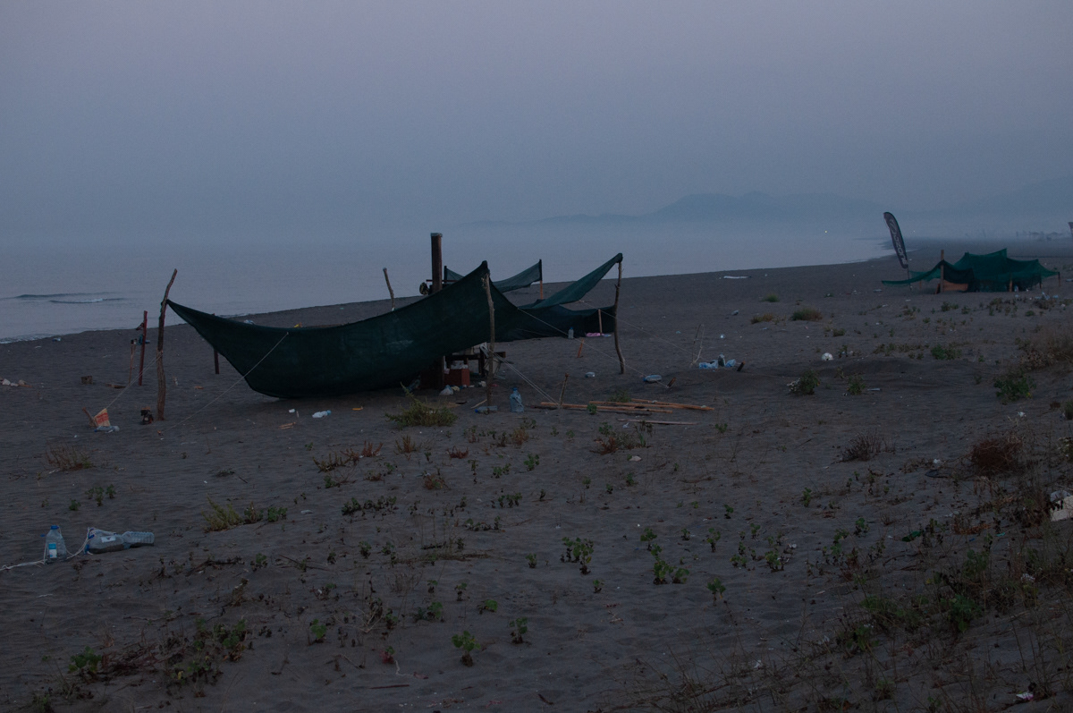 Since we had arrived after sunset, we hadn’t seen much the night before. But in the daylight, the place looked different—trash scattered around, makeshift huts, and wooden constructions suggested that people often gathered here. Yet, we hadn’t heard any parties. The whole area felt like an off-season party spot. We packed up and moved on.
