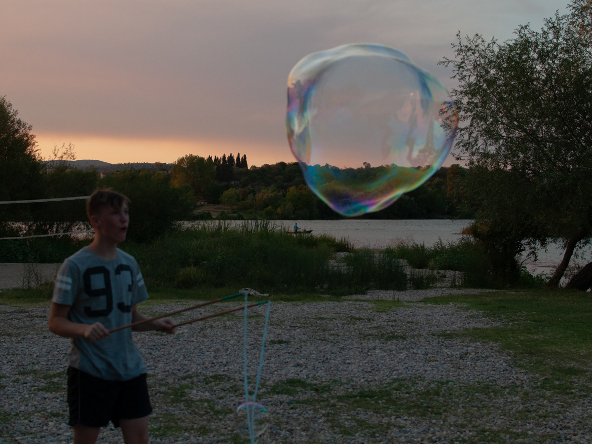 There, we met a group of locals spending the day grilling and swimming in the river. We joined them—not with many words, but with smiles. Sharing food, jumping into the water, and blowing soap bubbles we had brought with us turned this day into one of those unexpected yet unforgettable moments on the road.