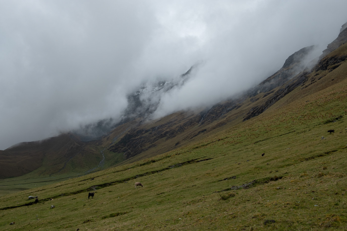 In the morning, we set off from an elevation of 3,900 meters toward the first mountain pass, rising to 4,900 meters. From time to time, the raw presence of Apu Salkantay — towering at 6,271 meters — sent icy gusts our way, as if reminding us who truly ruled these mountains.