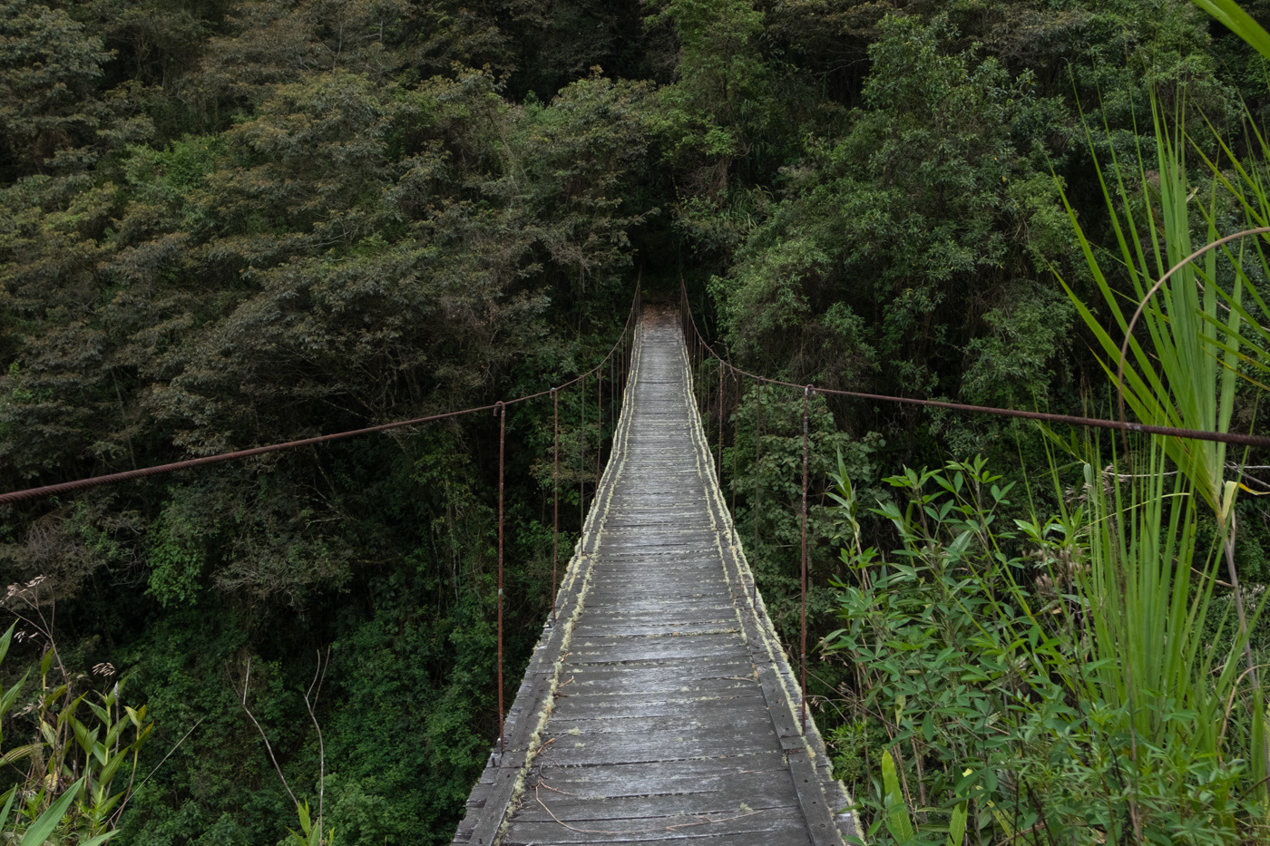 Im niżej schodziliśmy w stronę dżungli, tym mocniej lało. Krajobraz jednak z każdym metrem stawał się coraz bardziej zielony i tropikalny. W końcu dotarliśmy do niezwykłego miejsca: nad nami górowały surowe, ośnieżone lodowce, z których spływały długie, wąskie wodospady, a wszędzie wokół pulsowała soczysta zieleń.